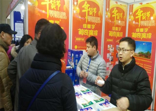 濮陽綠宇泡綿有限公司作為”濮陽市優(yōu)秀電商企業(yè)”代表受濮陽市商務(wù)局邀請參加了本次年貨博覽會。作為年貨博覽會中非常新奇的面孔——“神奇魔擦”剛一亮相,前來置辦年貨的老百姓就圍滿了展位,最多的問題就是:“這是什么的東西”,“這不就是海綿嗎”,“擦得這么干凈什么原理”……面對這些問題我公司銷售人員耐心解答、用心演示,用滿腔熱忱化解老百姓的諸多疑惑。為起到更大的宣傳作用,我公司銷售員一會在展位上吆喝產(chǎn)品、一會跑到過道贈送試用品、一會在連廊處發(fā)放宣傳頁,一會又趕緊回展位演示、講解,緊緊一個上午幾個銷售員嗓子就沙啞了起來……廢寢忘食的努力若能為了換來顧客的認(rèn)可就是銷售員最好的年貨,就像一位顧客試用完產(chǎn)品后對著我們說:“小伙子,你們的產(chǎn)品還真是:輕輕松松大掃除,干干凈凈過大年!”